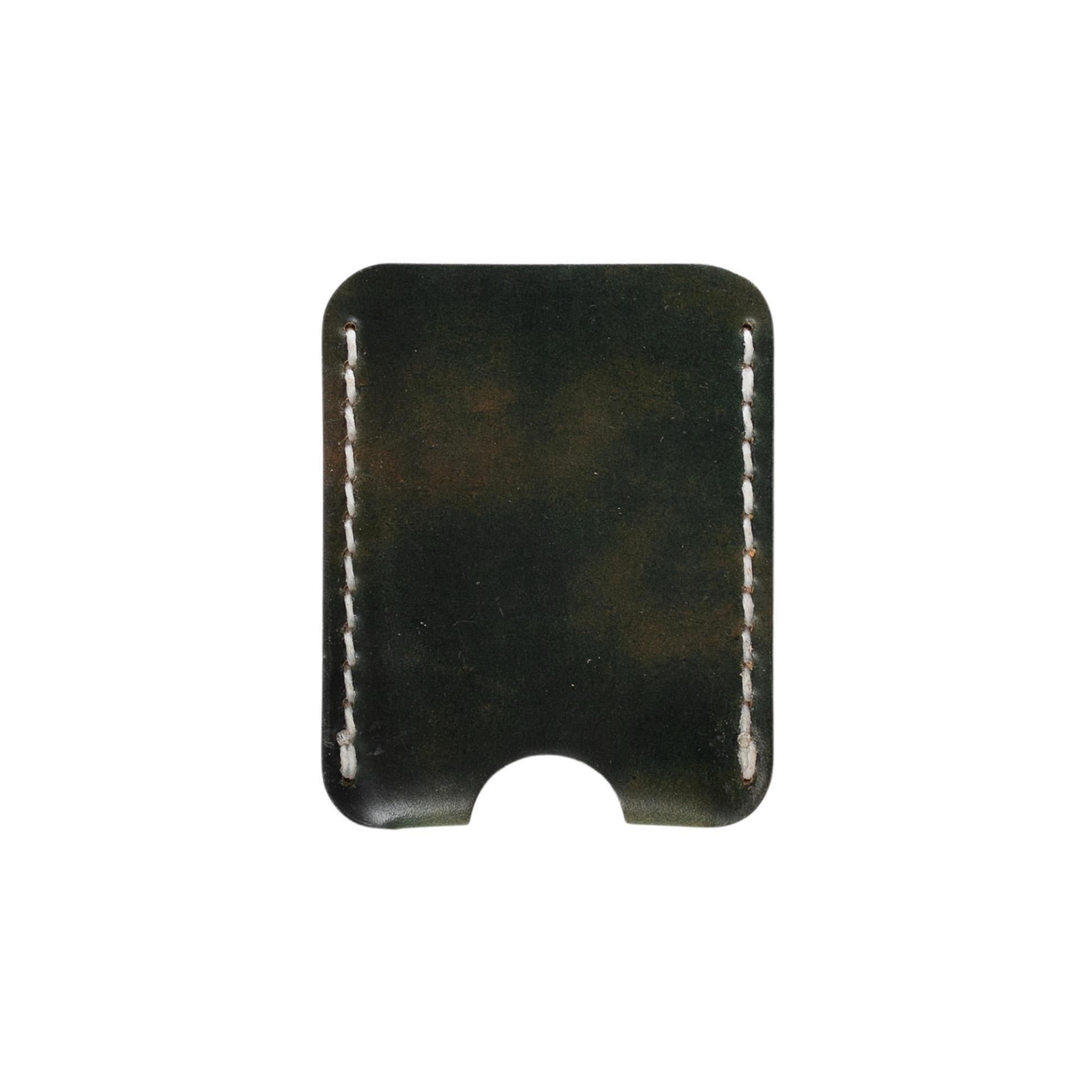 Marbled Black Horween shell cordovan with White thread.