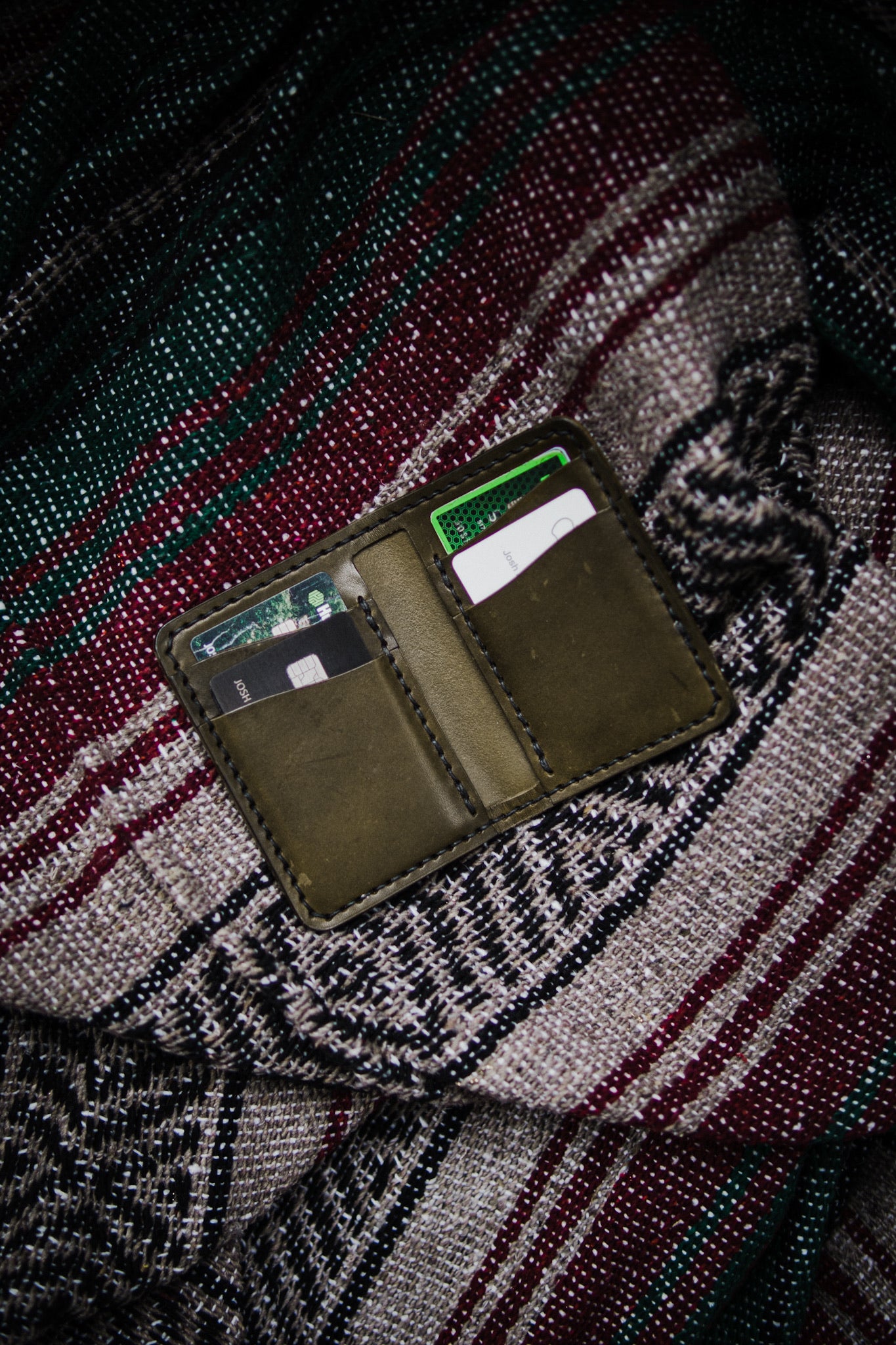 Pictured here is the Finlet Vertical in Olive Leather with Black thread. For custom requests, please email us at info@grovesupply.co.